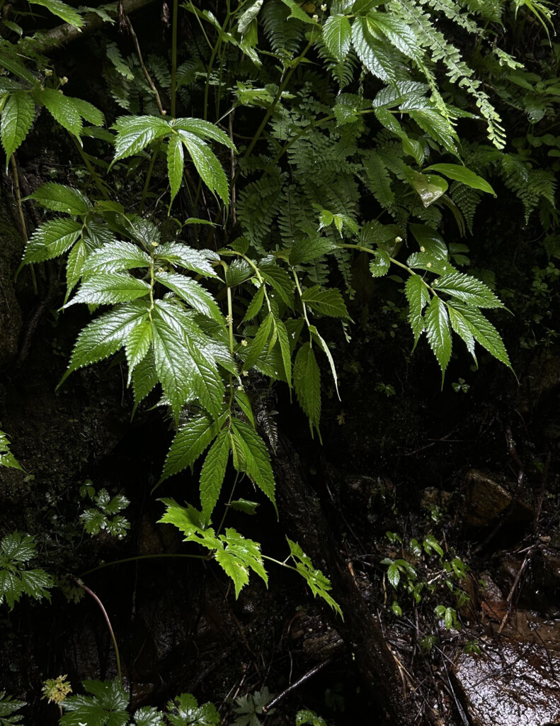 正式名称はウワバミソウといいますが、大鳥ではミズと呼ばれています。茎に水分が多いのが特徴。5月下旬にもなると赤ミズは青ミズと同じく、杉林など、日影で湿り気のある沢の近くなどに群生する。旬は茎が太くなる6月下旬頃。茎を引っ張ると根っこごと採れてしまうので、根っこは採らないようにねじったりナイフを入れたりしながら採取する。普通の山菜であれば夏になれば茎や葉が固くなり、食べられなくなってしまいますが、ミズは秋口になっても皮を剥けば食べられるし、ミズの茎の節々についた実も食べることができます。クセが無く、シャキシャキとした食感を楽しめる山菜なので、お浸しや味噌汁などで食べられる。長く保存するには、塩漬けにしておく。根の赤い部分はよく、”たたき”にして食べられる。ミズの葉は大鳥の人は食べないのですが、実や葉っぱも食べられます。天ぷらなどにして食べるのもおススメ。
